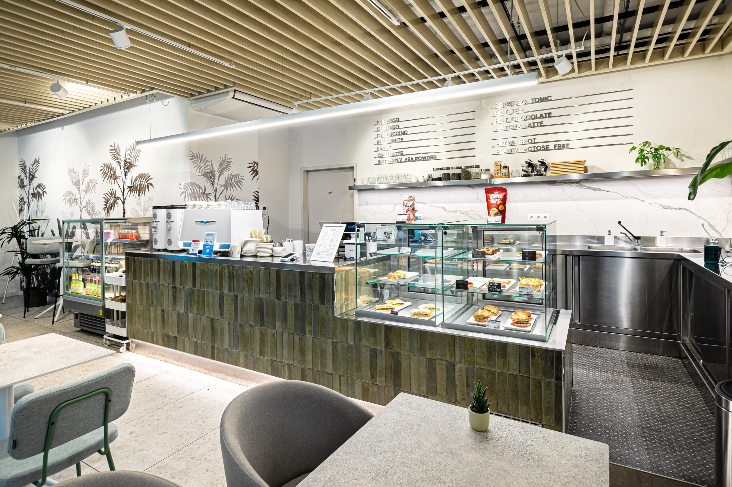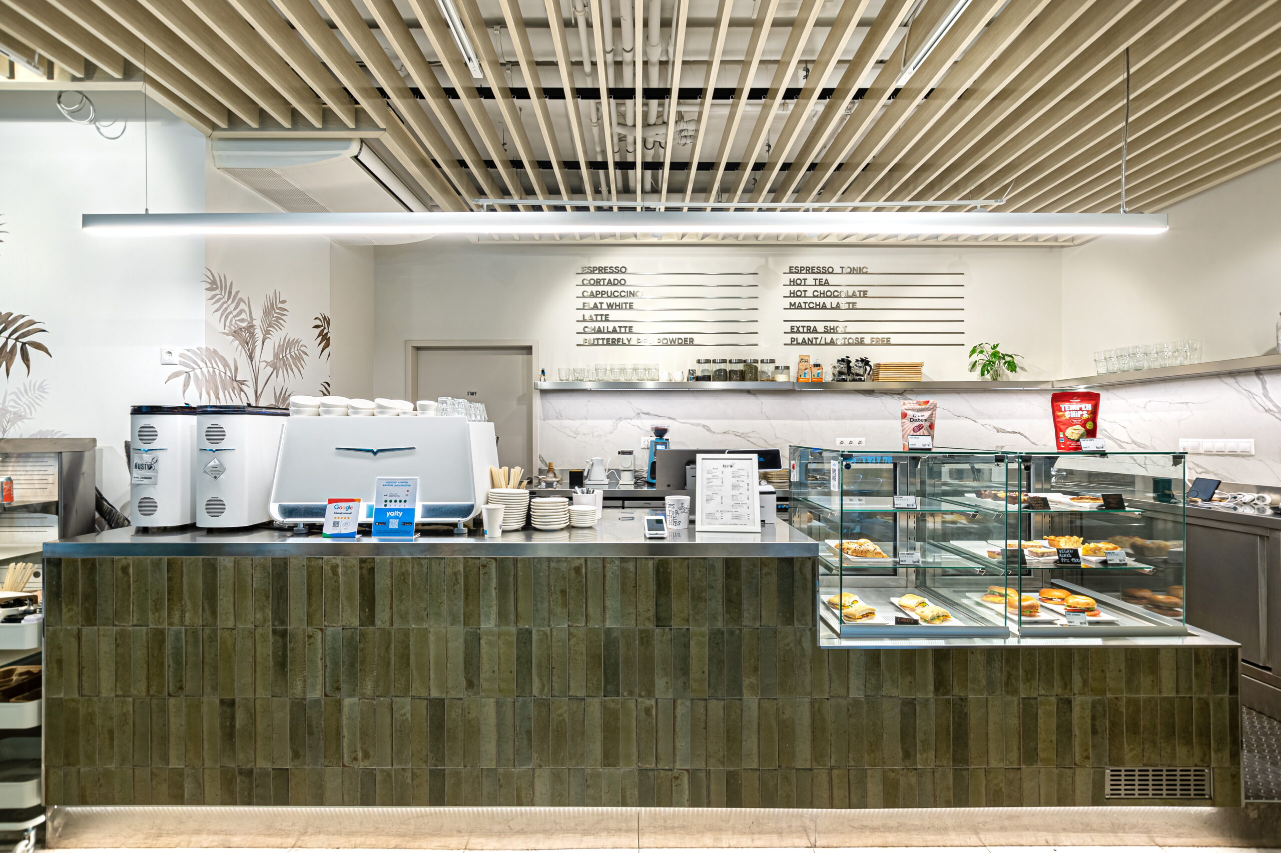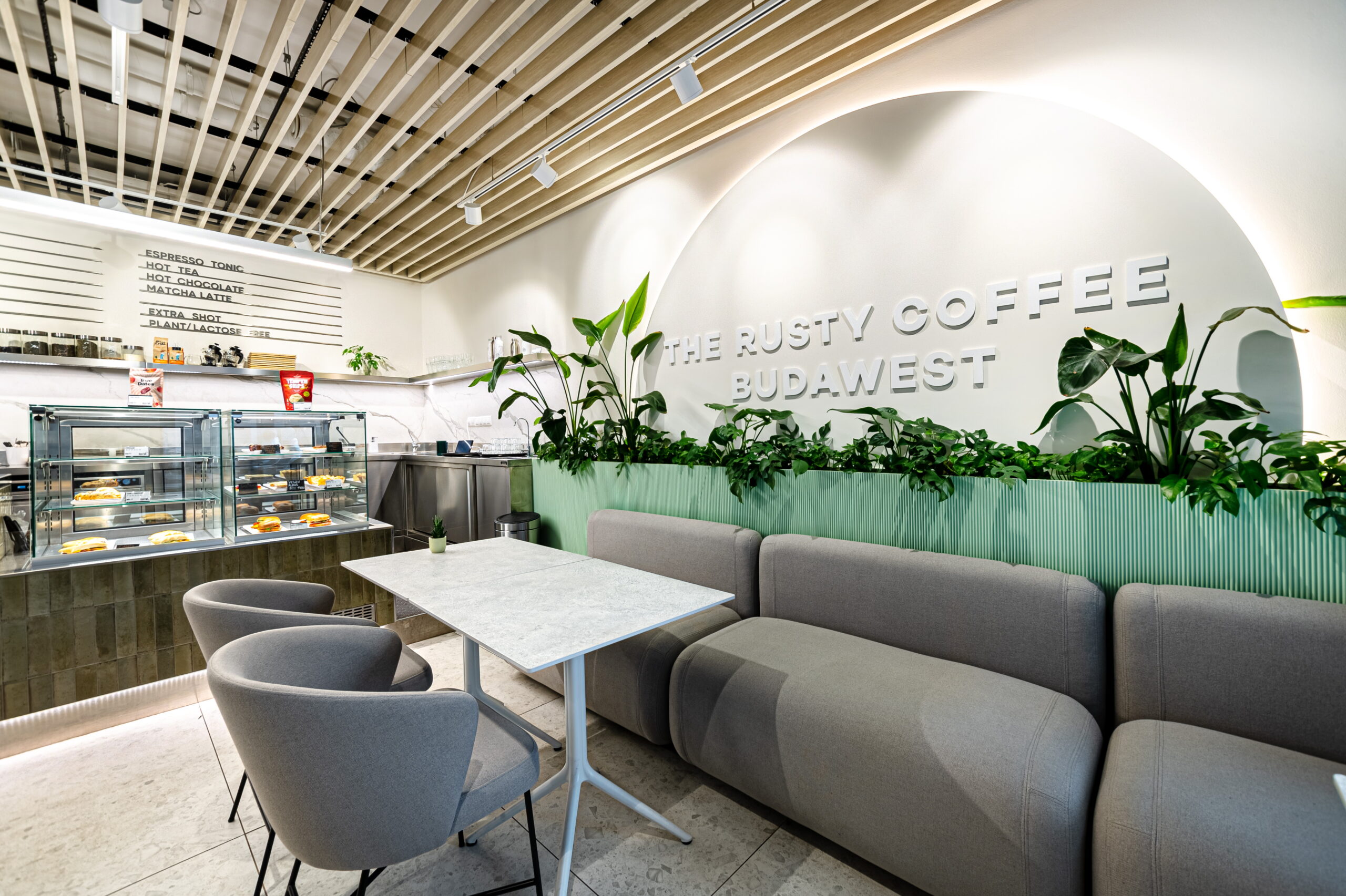 The renovation of the Rusty Coffee café in the Budawest office building was a complex, multidisciplinary project in which kitchen technology planning and the interior design concept were developed in close integration.