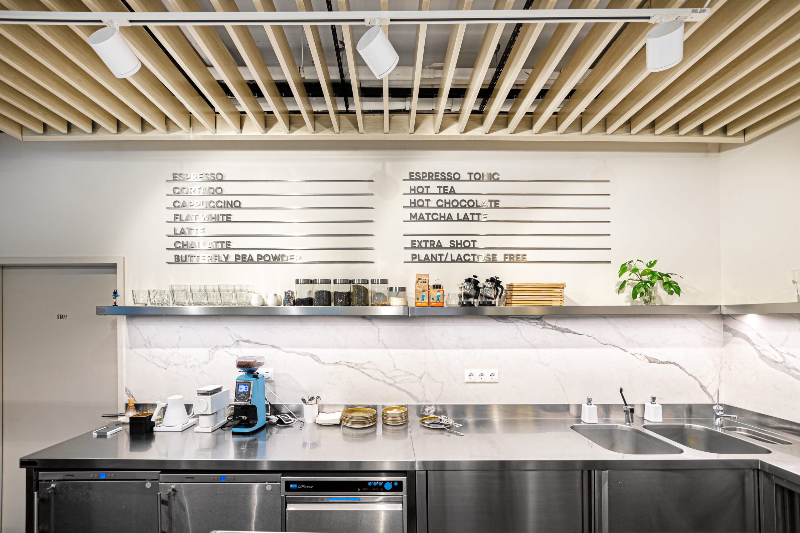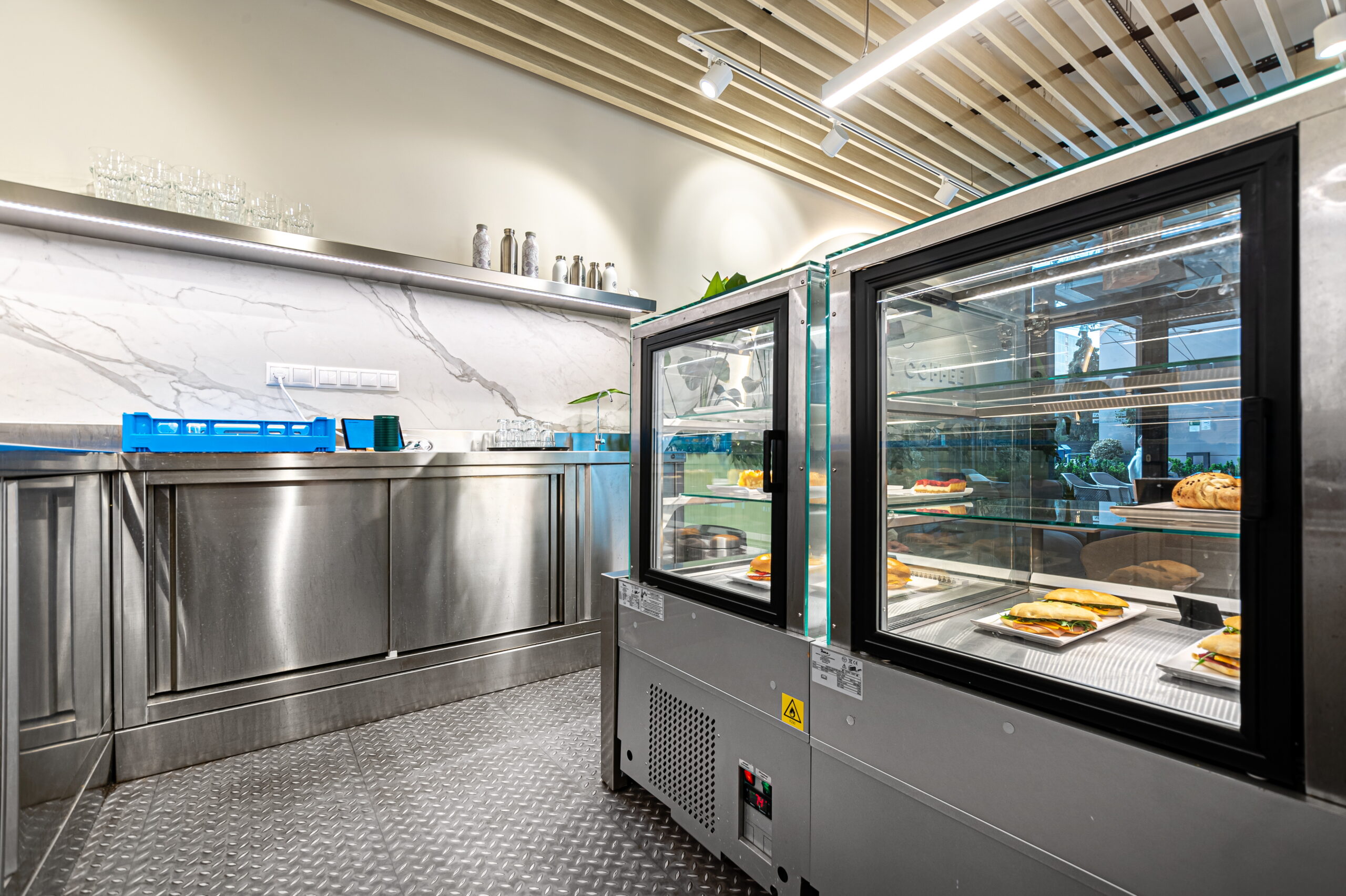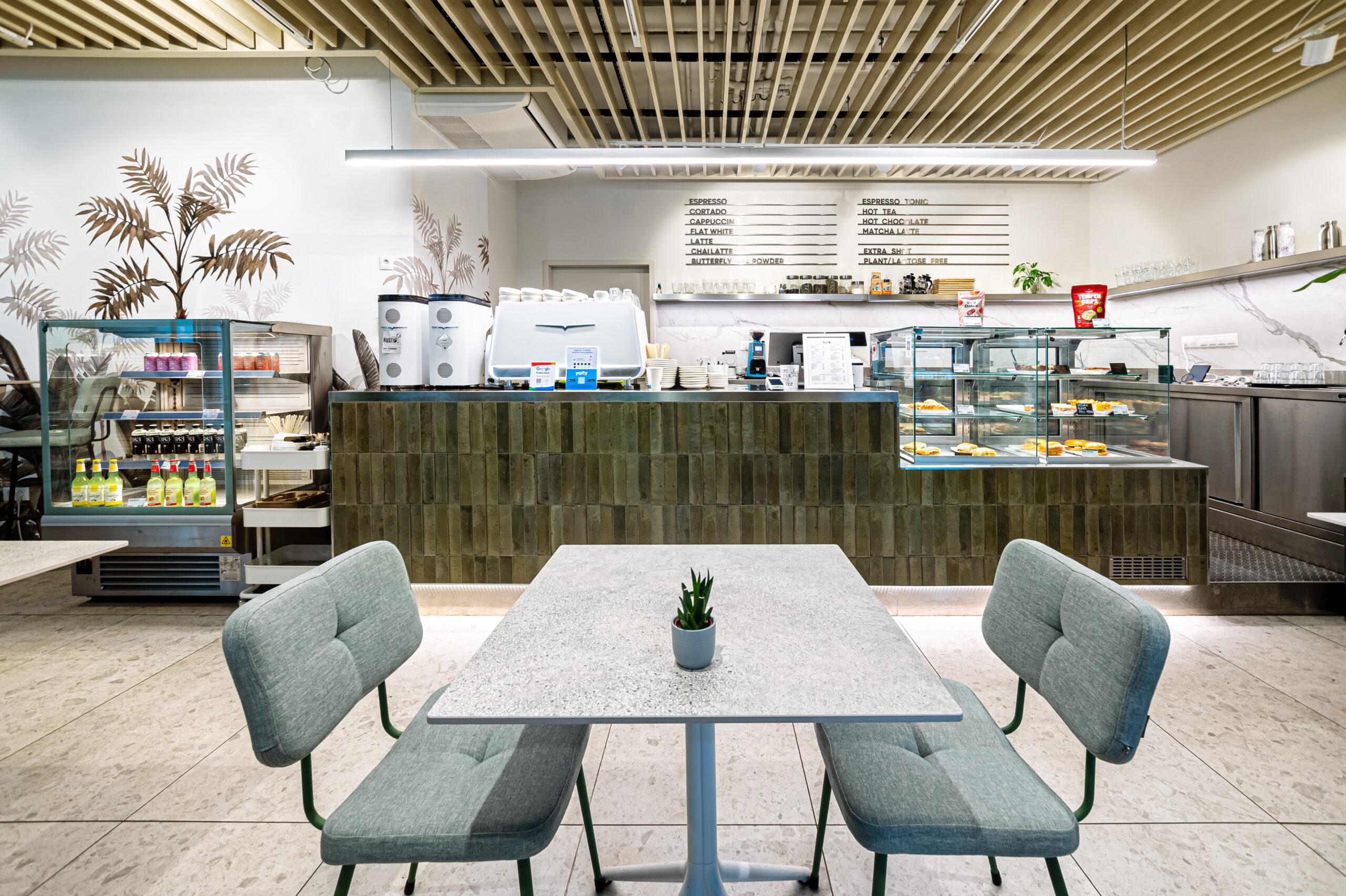 The renovation of the Rusty Coffee café in the Budawest office building was a complex, multidisciplinary project in which kitchen technology planning and the interior design concept were developed in close integration.